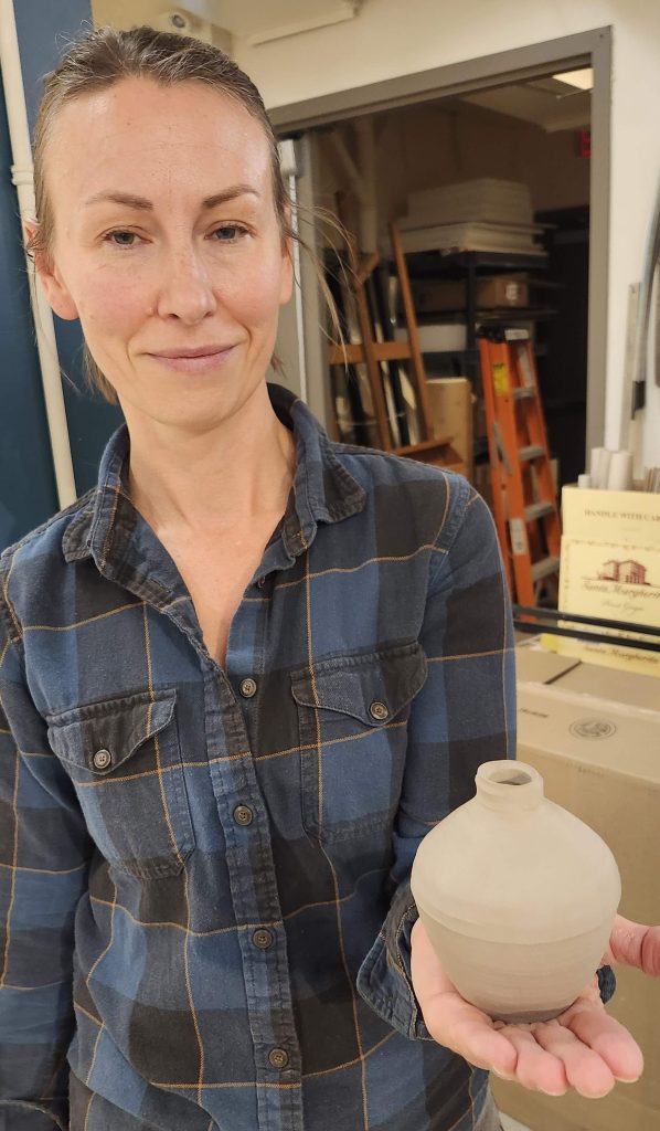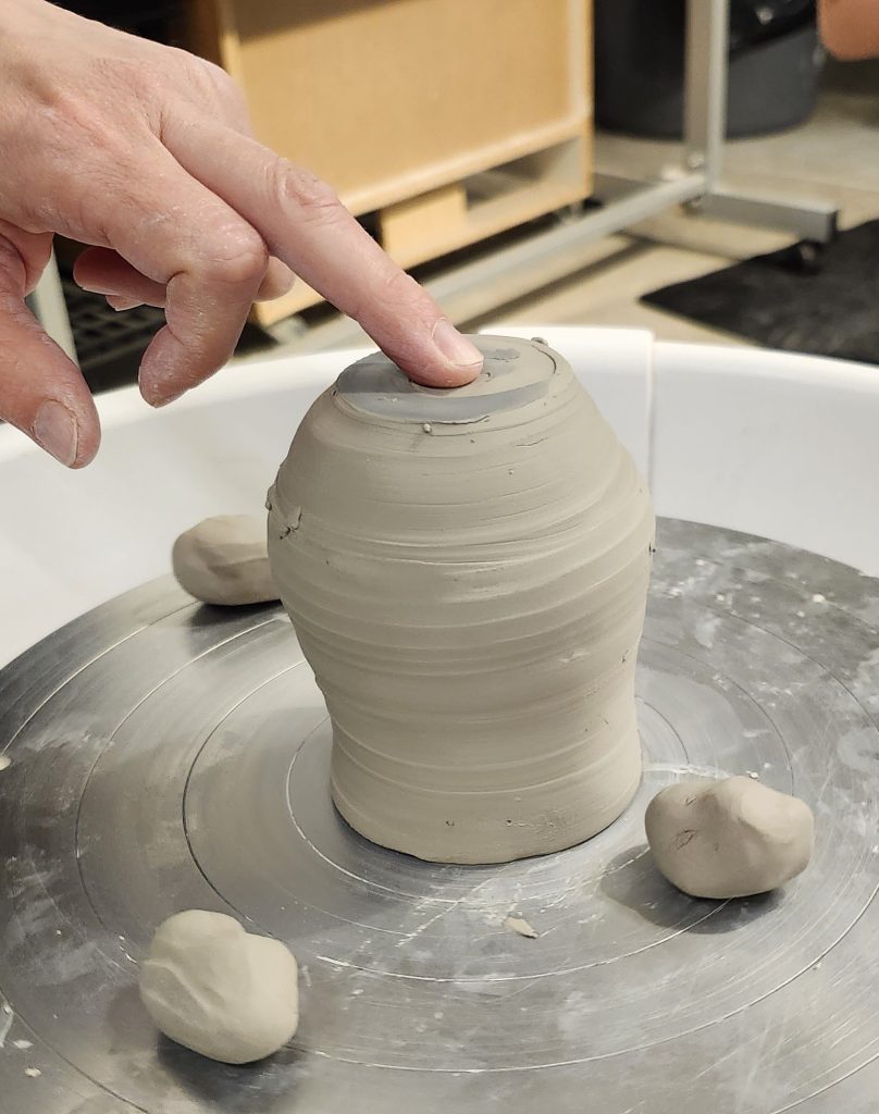 Catherine centering a pot in preparation for the trimming phase