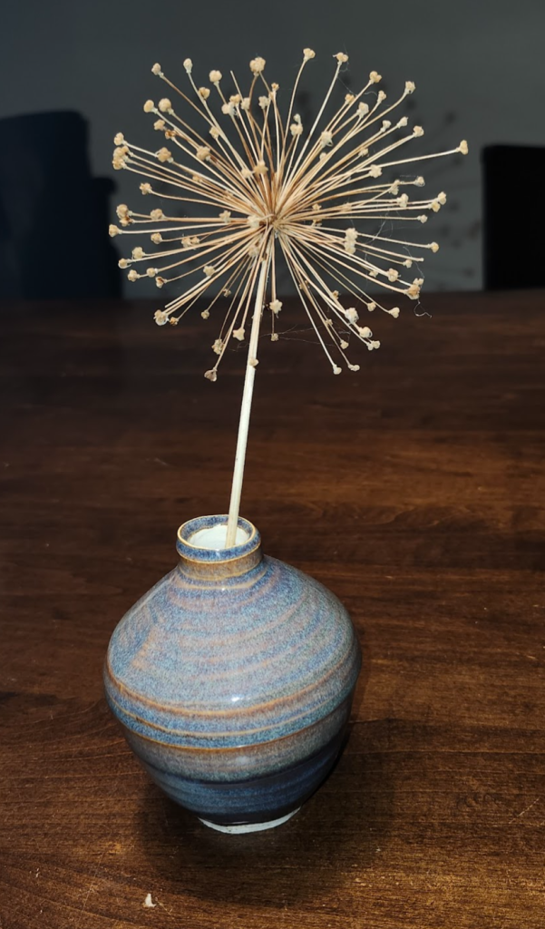 Another beautiful piece by Catherine, which I describe as modernist-minimalist. I thought it would be a nice cup for scotch on the rocks, Catherine decided to fill it with garlic.
