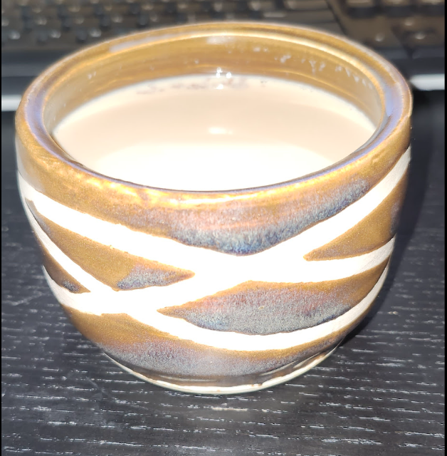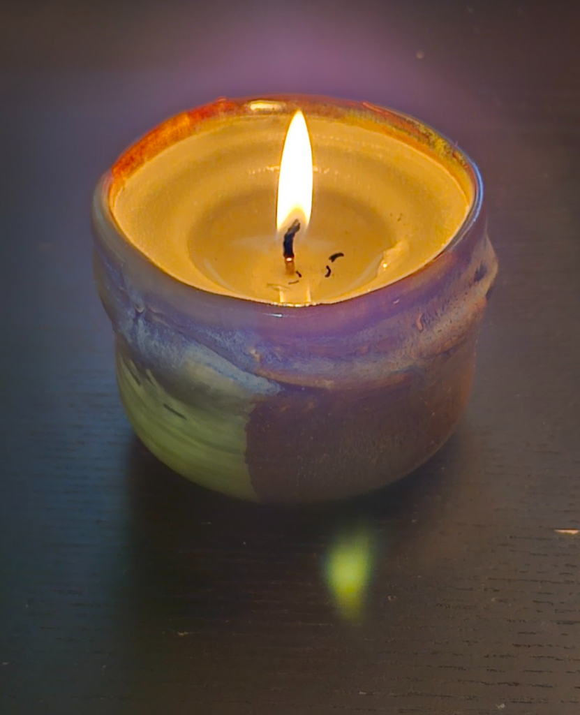 One of my finished cups that seems to work better as a candle than a cup.